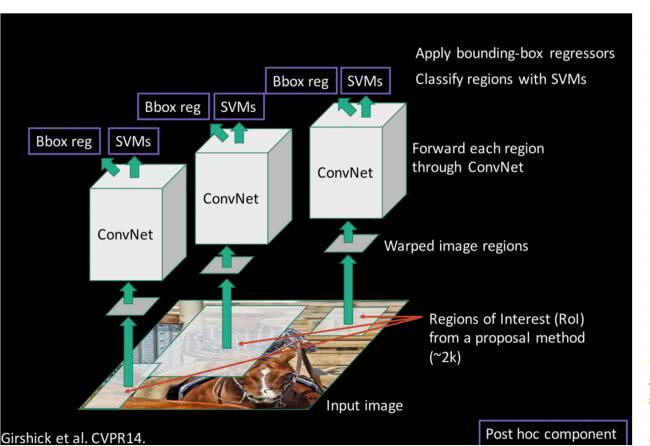 2. 候选区域/框 + 深度学习分类:通过提取候选区域,并对相应区域进行以深度学习方法为主的分类的方案,如: