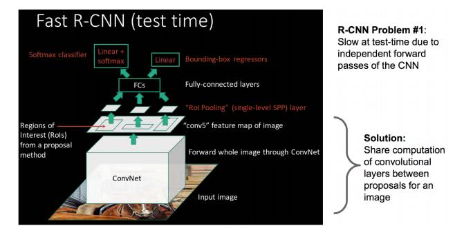 大缺点:由于每一个候选框都要独自经过CNN,这使得花费的时间非常多。