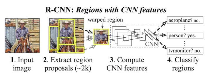 2014年,RBG(Ross B. Girshick)使用Region Proposal + CNN代替传统目标检测使用的滑动窗口+手工设计特征,设计了R-CNN框架,使得目标检测取得巨大突破,并开启了基于深度学习目标检测的热潮。
