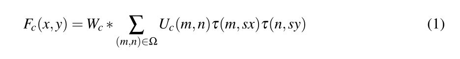 是深度卷积的第c个核,*表示空间卷积。Ω是输入特征的坐标集,s是该层中的重采样系数。