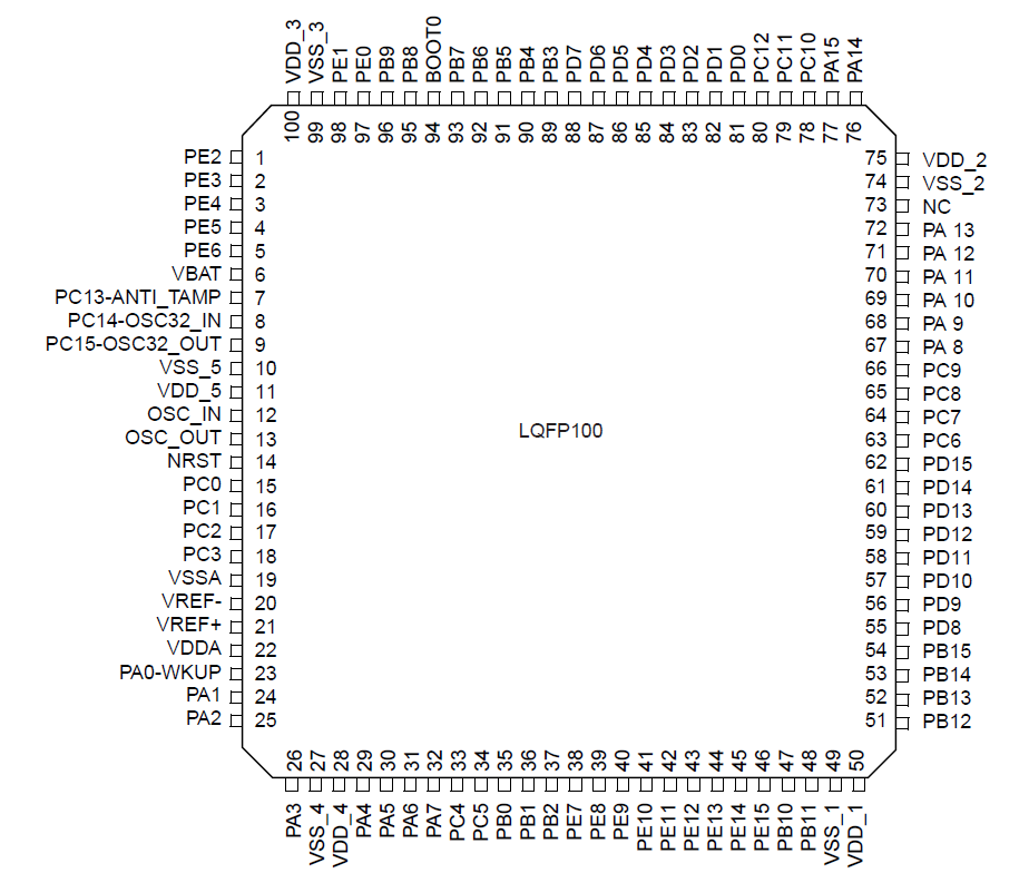 由于32单片机的内部是分单元构建的,总共有四个VDD(Device),即器件内部工作电压,也可以理解为供电电压(supply voltage),只要有一个没有连接就一定会有部分单元无法工作。