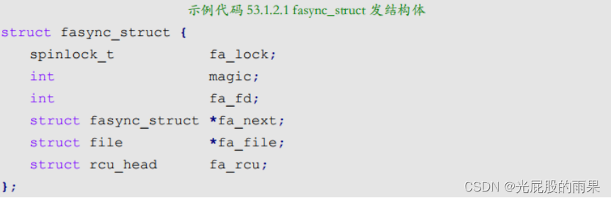 首先我们需要在驱动程序中定义一个fasync_struct结构体指针变量,fasync_struct结构体内容如下: