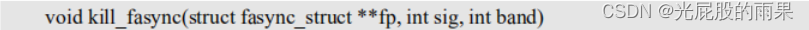 fasync_helper函数的前三个参数就是fasyn函数的那三个参数,第四个参数就是要初始化的fasync_struct结构体的指针变量。当应用程序通过fcntl(fd,F_SETFL。flags|FASYNC)改变fasync标记的时候,驱动程序file_operations操作集中的fasync函数就会执行。