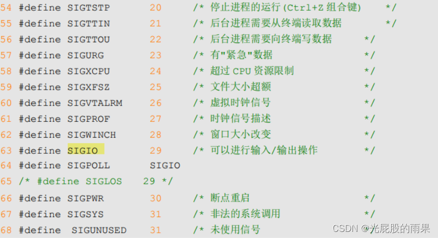 这些信号就相当于中断号,不用的中断号代表了不同的中断,不同的中断代表了不同的处理,因此,驱动程序可以通过向应用程序发送不同的信号来实现不同的功能。