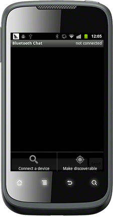 1 // Initialize the button to perform device discovery 2 Button scanButton = (Button) findViewById(R.id.button_scan); 3 scanButton.setOnClickListener(new OnClickListener() { 4 public void onClick(View v) { 5 doDiscovery(); 6 v.setVisibility(View.GONE); 7 } 8 });