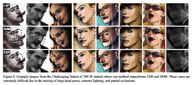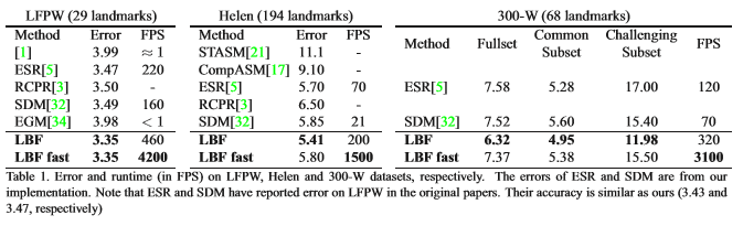 3.速度:It achieves over 3,000fps on a desktop or 300fps on a mobile phone for locating a few dozens of landmarks.