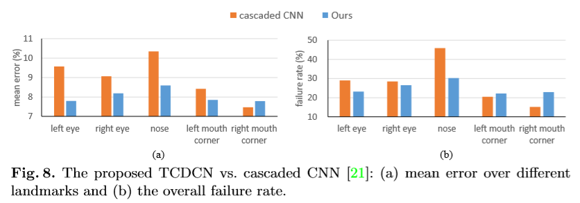 Although both the TCDCN and the cascaded CNN are built upon CNN, we show that the proposed model can achieve better detection accuracy with a significantly lower computational cost.
