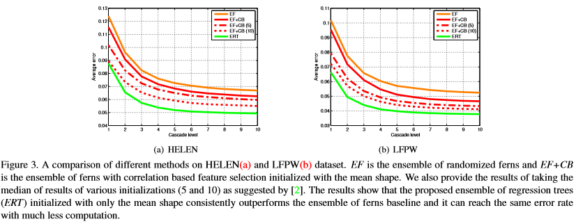 Figure 3 shows the average error at different levels of the cascade which shows that ERT can reduce the error much faster than other baselines.