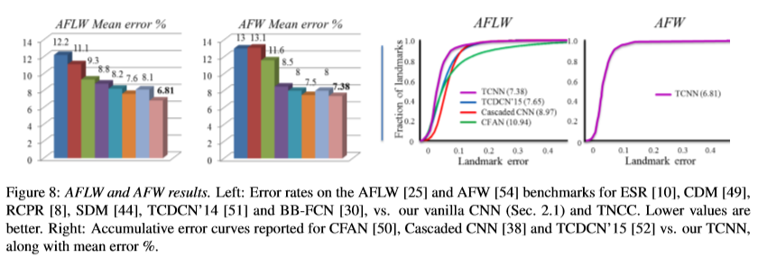 MTCNN在TCDCN的基础上速度和精度都有一定的提升。