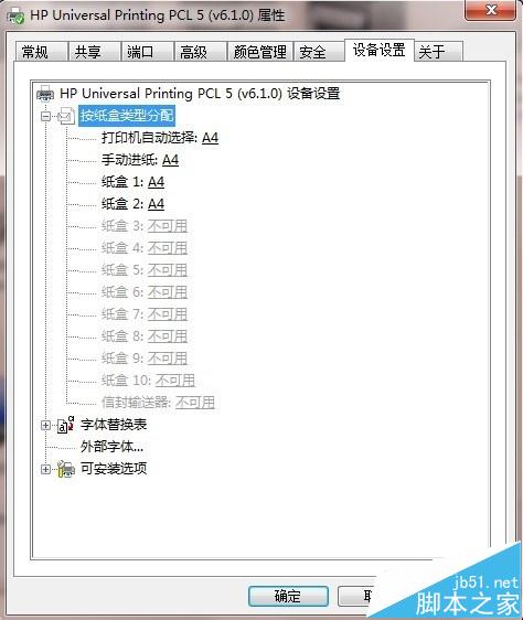 注意:此电脑安装的是官网上的通用驱动HP Universal Printing PCL5(V6.1.0),如果是M712自身驱动设置方法相同
