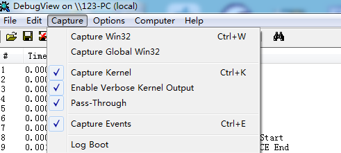 5 在需要调试驱动的机器上使用管理员权限打开 Dbgview,记得要勾选如下选项。