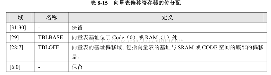 这个地方说明VTOR寄存器的第7到28位是用来存储偏移量的,这也就能解释为什么刚才代码里面进行与运算的是0x1FFFFF80了。