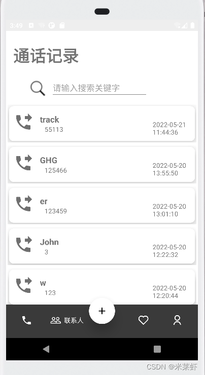 ❥ 有了联系人之后,就可以进行发送短信和拨打电话操作。此后可以进行通话记录查询 ,实现了基础的通讯录好友联系功能。