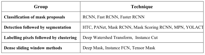 目标检测或定位是数字图像从粗到细的一个渐进过程。它不仅提供了图像对象的类,还提供了已分类图像中对象的位置。位置以边框或中心的形式给出。语义分割通过对输入图像中每个像素的标签进行预测,给出了较好的推理。每个像素都根据其所在的对象类进行标记。为了进一步发展,实例分割为属于同一类的对象的单独实例提供了不同的标签。因此,实例分割可以定义为同时解决目标检测问题和语义分割问题的技术。本文对实例分割的背景、存在的问题、技术、发展、流行的数据集、相关工作以及未来的发展进行了讨论。本文为想在实例分割领域进行研究的人们提供了有价值的信息。
