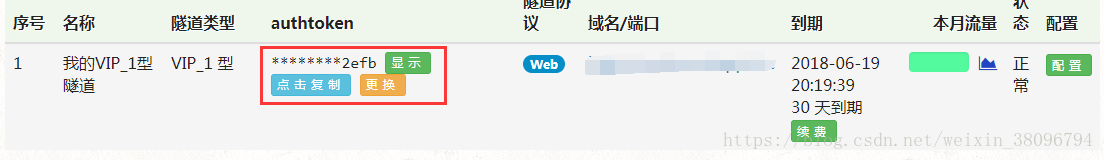 修改配置文件:将刚刚配好的域名中的“token”复制