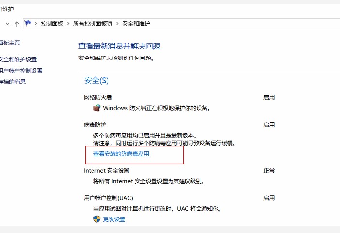 控制面板-系统安全-操作中心看一下