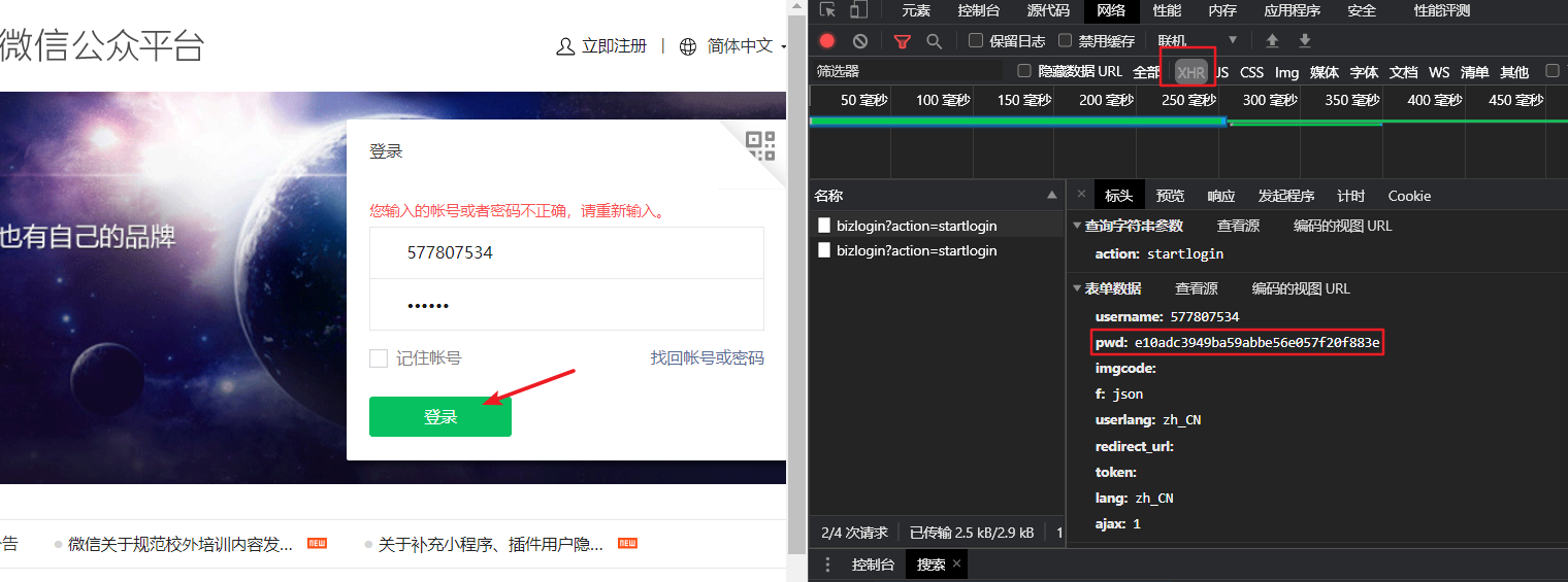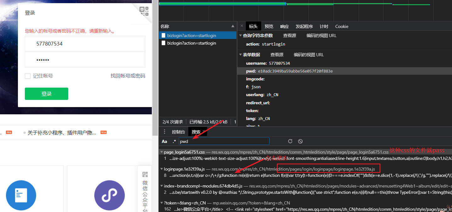 我们登录微信公众号平台,发现密码字段被加密了,接下来对其js加密进行分析,并寻找出js加密代码