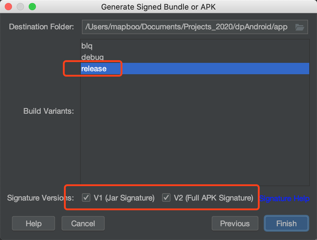 2. 选择第二个APK,构建一个签名apk文件,如下图:
