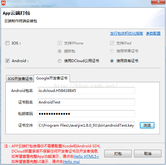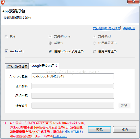 (1)、使用DCloud公用证书