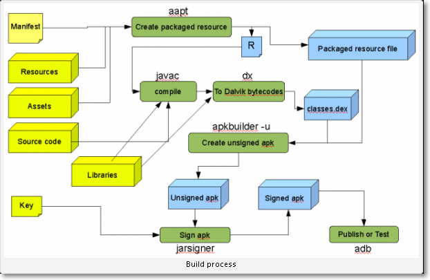 Eclipse中自动生成,ant和命令行使用Android SDK提供的aapt.exe生成资源包文件。