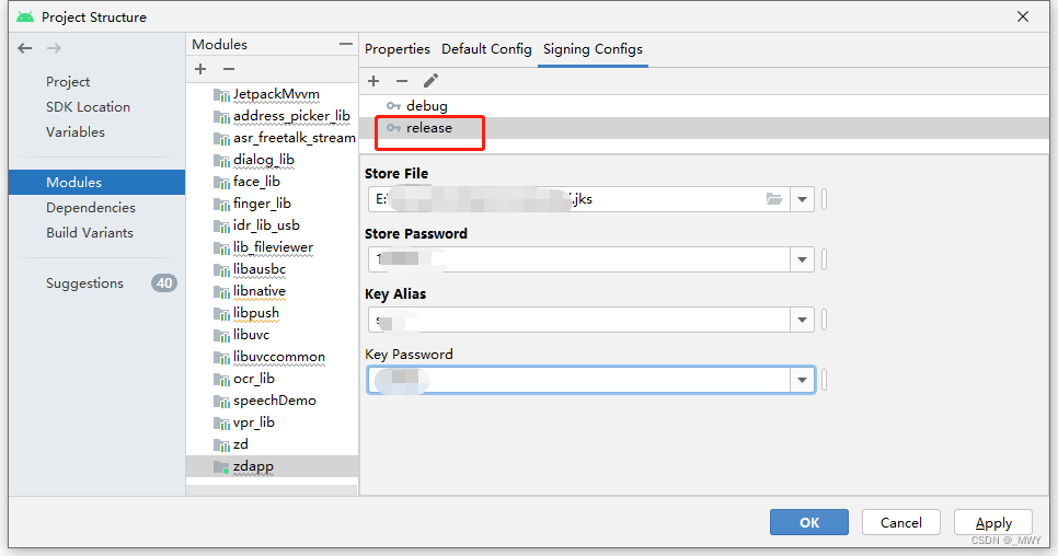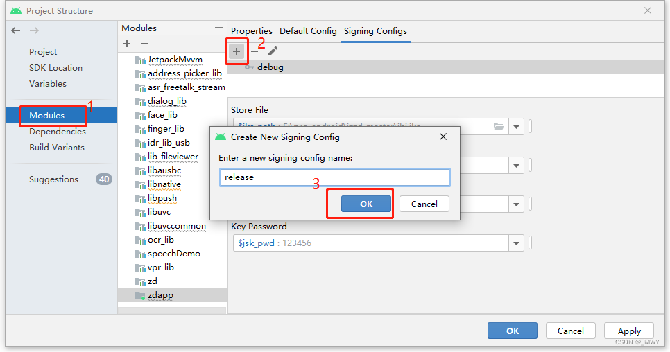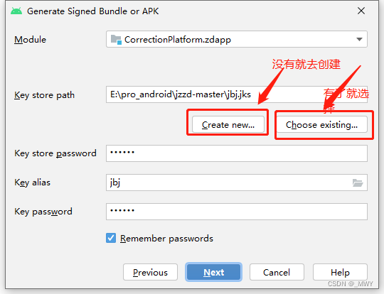3、上一步添加完release后 ,然后操作 选择jsk、输入密码、别名.....
