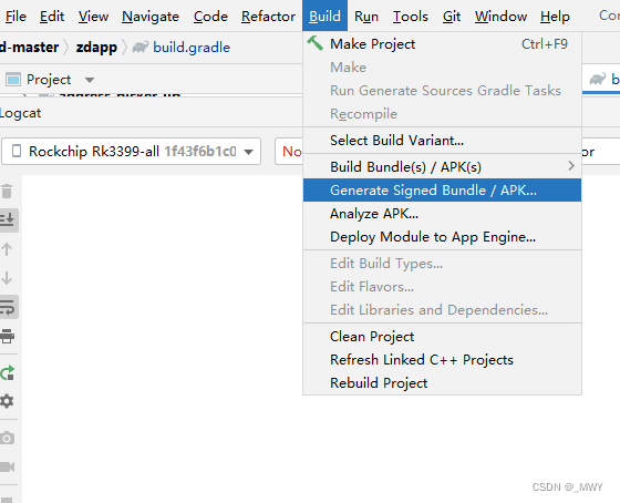 6、点击顶部工具栏Build > 如下图 然后等会就会打包成release包了