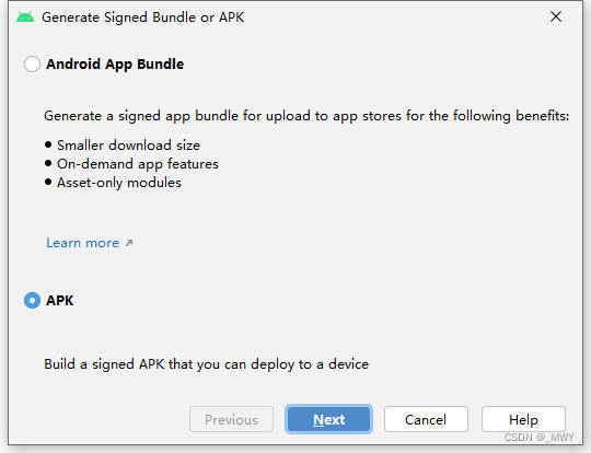 2、弹窗选择 APK 然后 Next