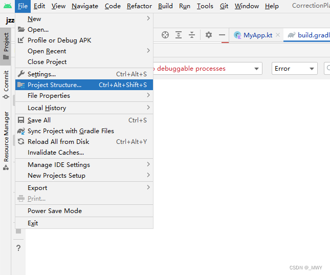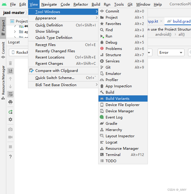 5、上述步骤都完成后,点击顶部工具栏 View > Build Variants