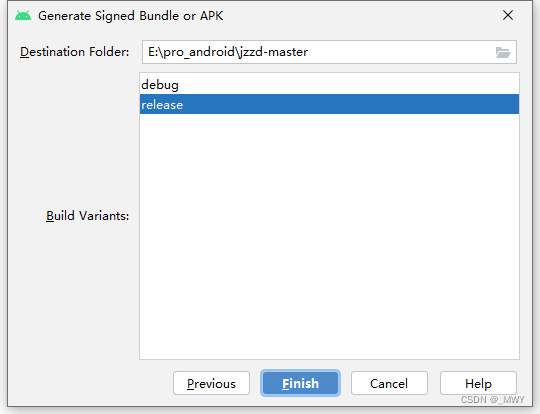 4、然后再选择release 再点击 Finish ,然后就等着打完包 就好了