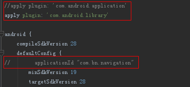 1)在app的build.gradle中修改,应用去掉改为library,再把应用的id删掉。