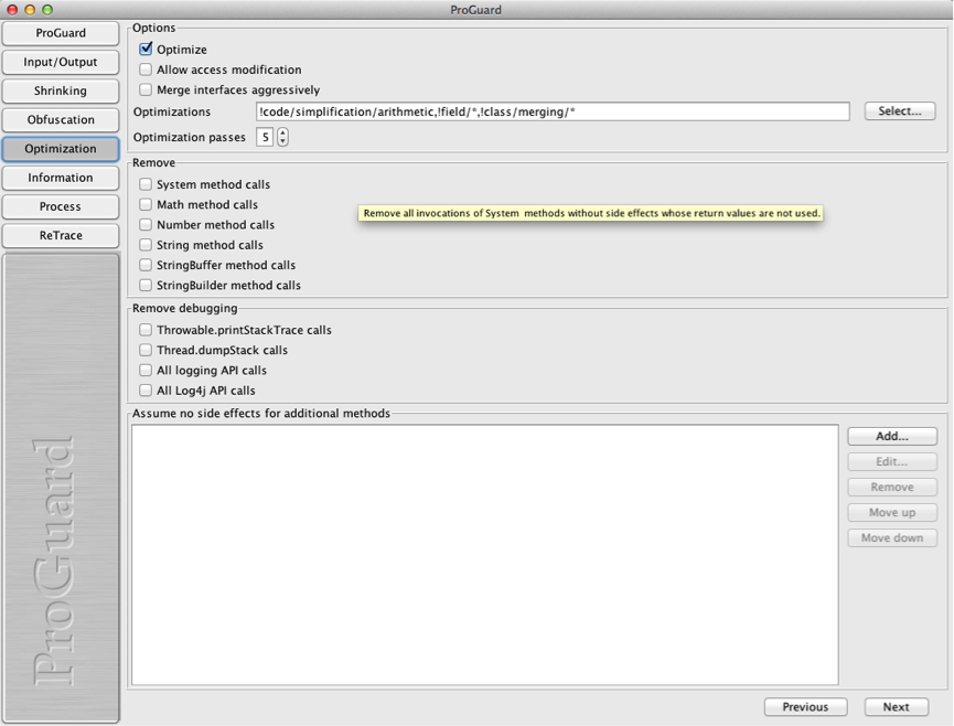 6、需要特别注意红框的选项,勾选后混淆出来的jar包有时导致在主项目中使用时报错:“conversion to dalvik format failedwith error 1”。