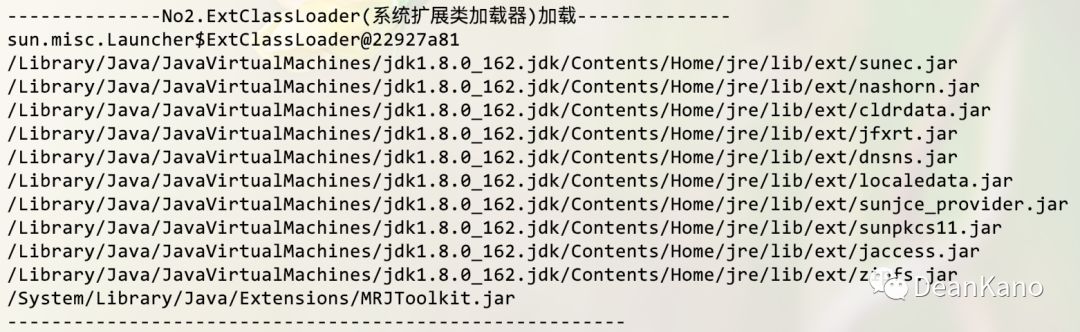 log.info("--------------No2.ExtClassLoader(系统扩展类加载器)加载${JAVA_HOME}/jre/lib/ext下的jar--------------");