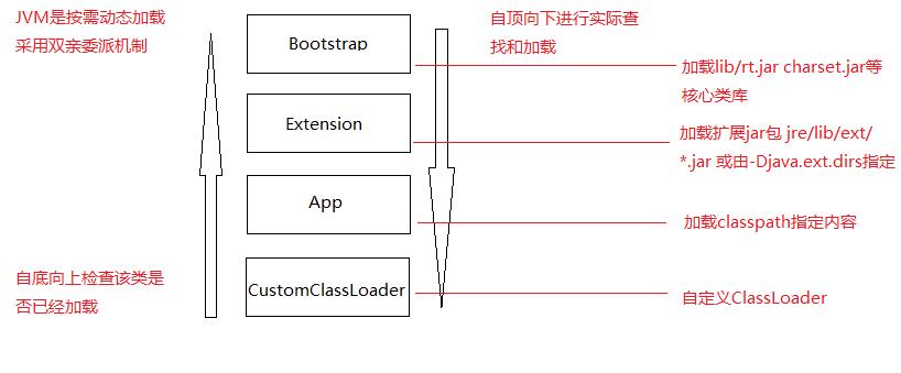 除了上面三个自带的以外,用户还能制定自己的类加载器,但是所有自定义的类加载器都应该继承自java.lang.ClassLoader 。比如热部署、tomcat都会用到自定义类加载器。