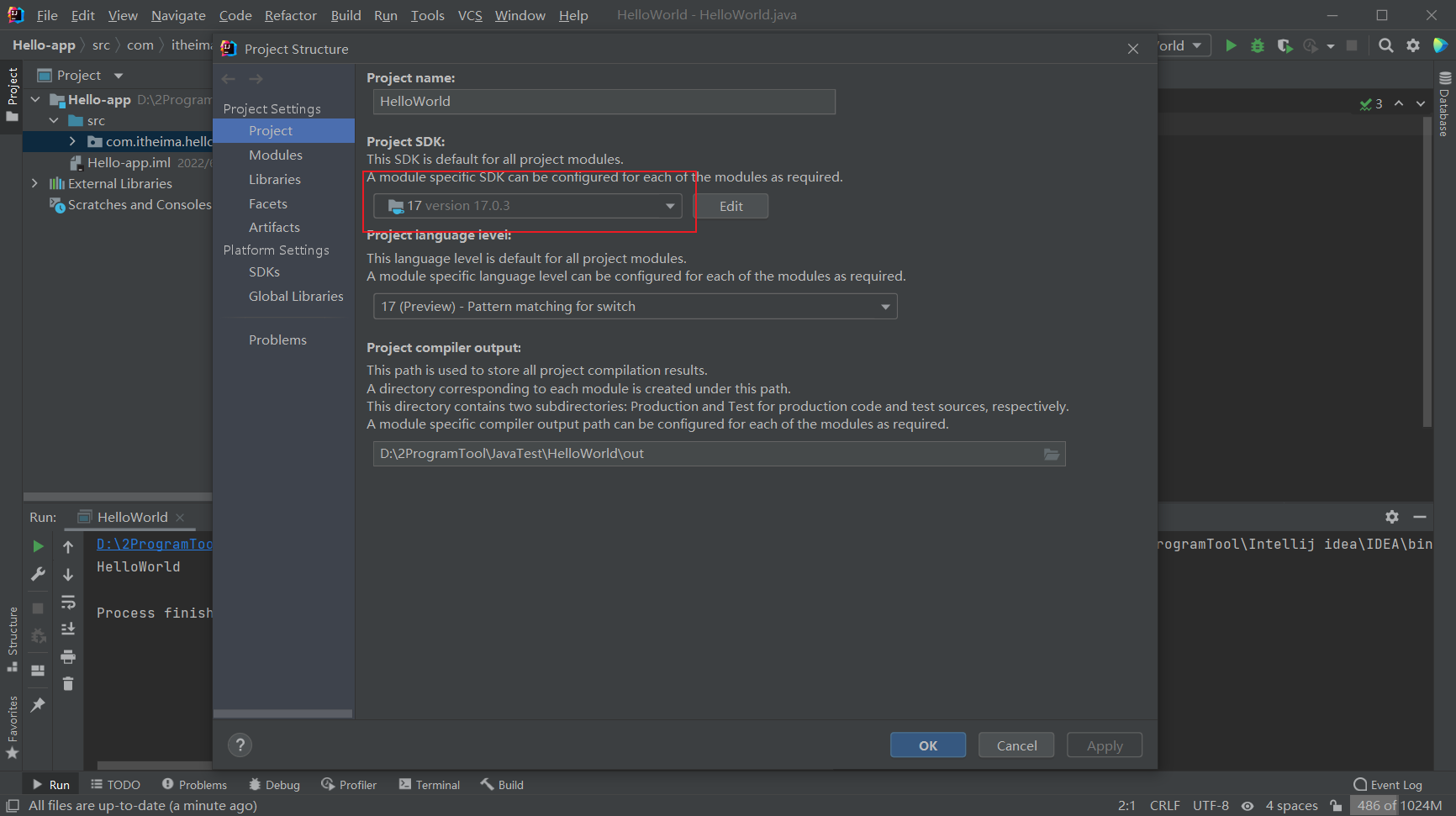 再进入Project Structure查看idea的jdk版本。