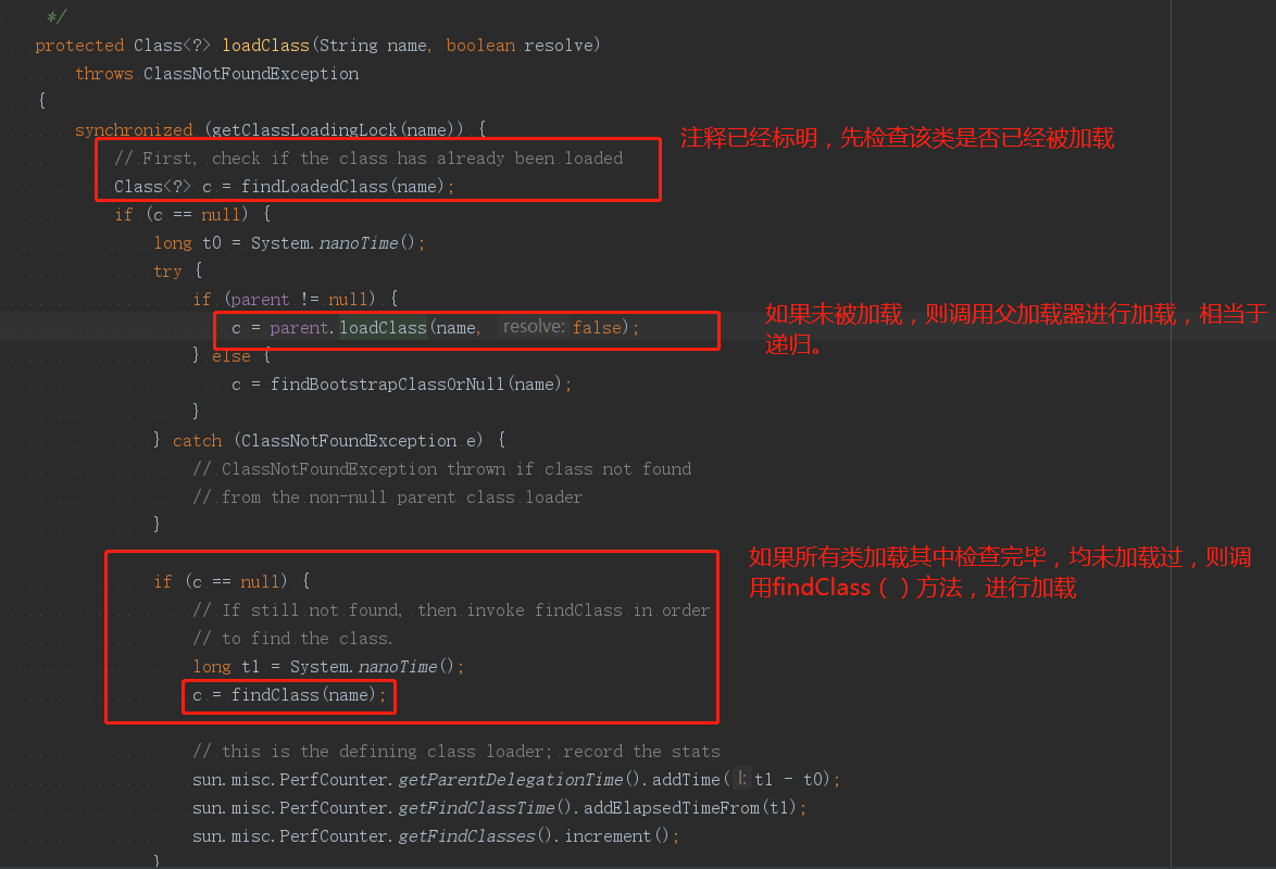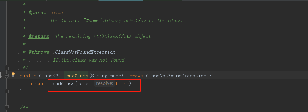 ClassLoader中有一个 loadClass()方法,我们进入这个方法查看: