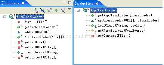 图四 标准扩展类加载器和系统类加载器成员大纲视图