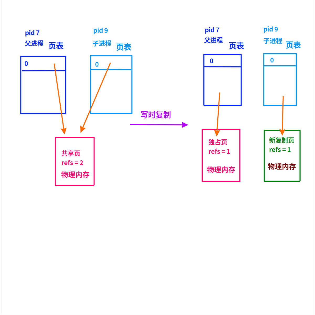 即,物理内存页的引用计数:计数为0表示空闲,> 0表示正在使用,具体数字表示共享这一页的进程个数。
