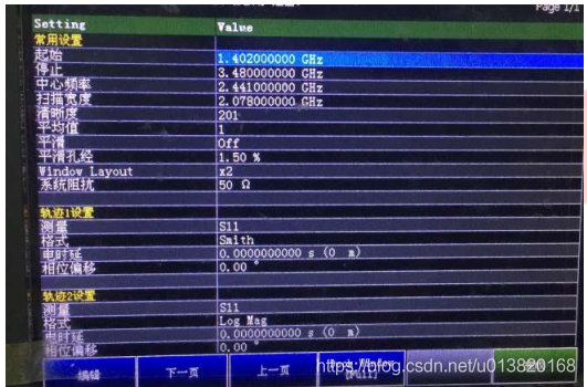 1)仪器设置:设置匹配阻抗为 50R,测量 S11,建议设置两条轨道 h Smith 和 和 g Log Mag 同时观察,必须校
