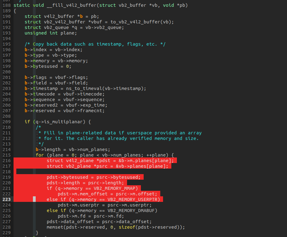 3.DQBUF操作填充用户态struct v4l2_buffer结构体的位置。