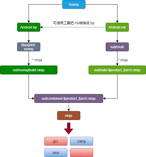 Android7.0 Google引入了soong构建系统,用来逐步替代GNU make的编译,因此在Android10.0 上,make执行后,我们走的是soong构建环境。