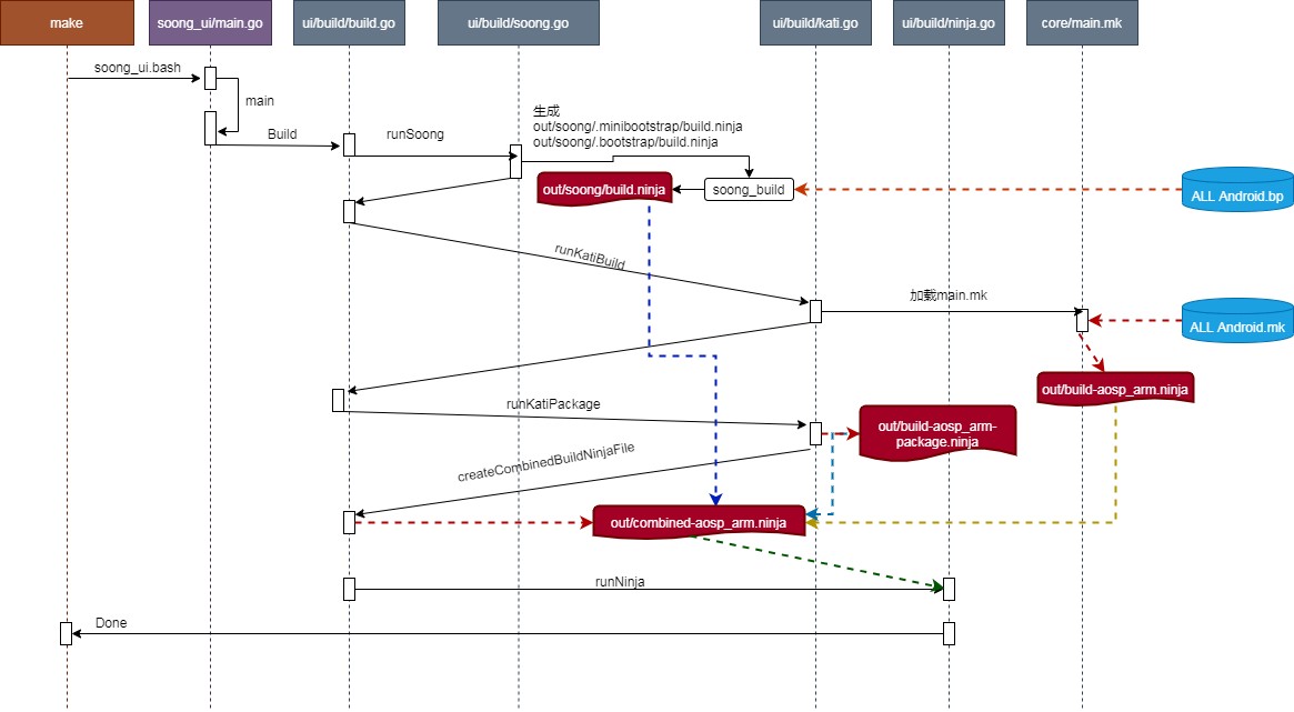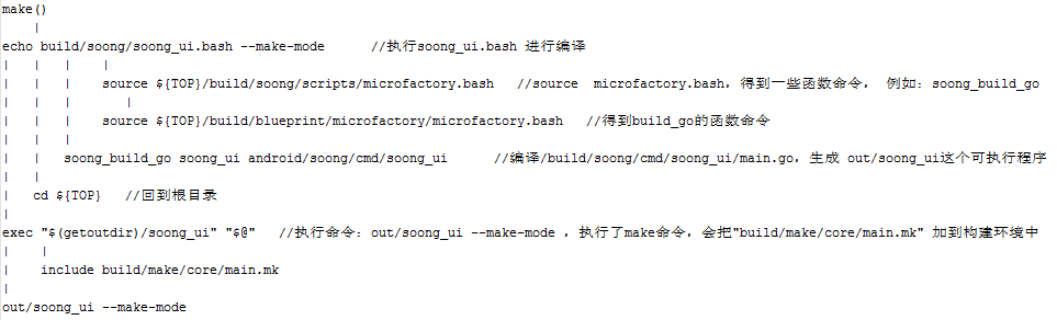 以上就是友好小天鹅最近收集整理的关于make编译过程-Android10.0编译系统(三)1 概述2 Android系统的编译历程3 Soong编译系统家族成员 4 make的流程图5 make() 6 soong_ui.bash6.1 soong_ui.bash调用栈6.2 [build/soong/soong_ui.bash]6.2.1 [/soong/../microfactory.bash]6.2.2 [/blueprint/../microfactory.bash]6.3 soong_ui6.3.1 main.go调用的全部内容,更多相关make编译过程-Android10.0编译系统(三)1内容请搜索靠谱客的其他文章。