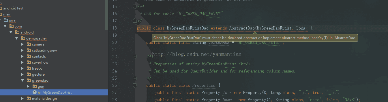 这个生成的文件夹,不能自己创建,没错,就是这个xx.greendao.gen,这是自动生成的,我担心他找不到,自己
