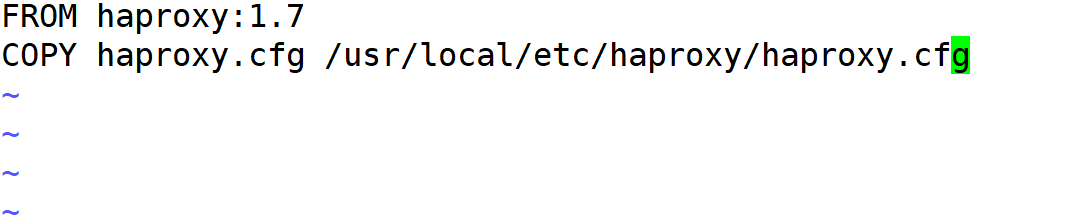 在/home/haproxy下新建两个文件Dockerfile和haproxy.cfg 文件如下: