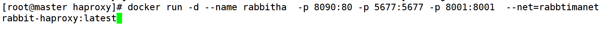 | 1 | docker run -d --name rabbitmq-haproxy -p 8090:80 -p 5677:5677 -p 8001:8001 --net=rabbtimanet rabbit-haproxy:latest |