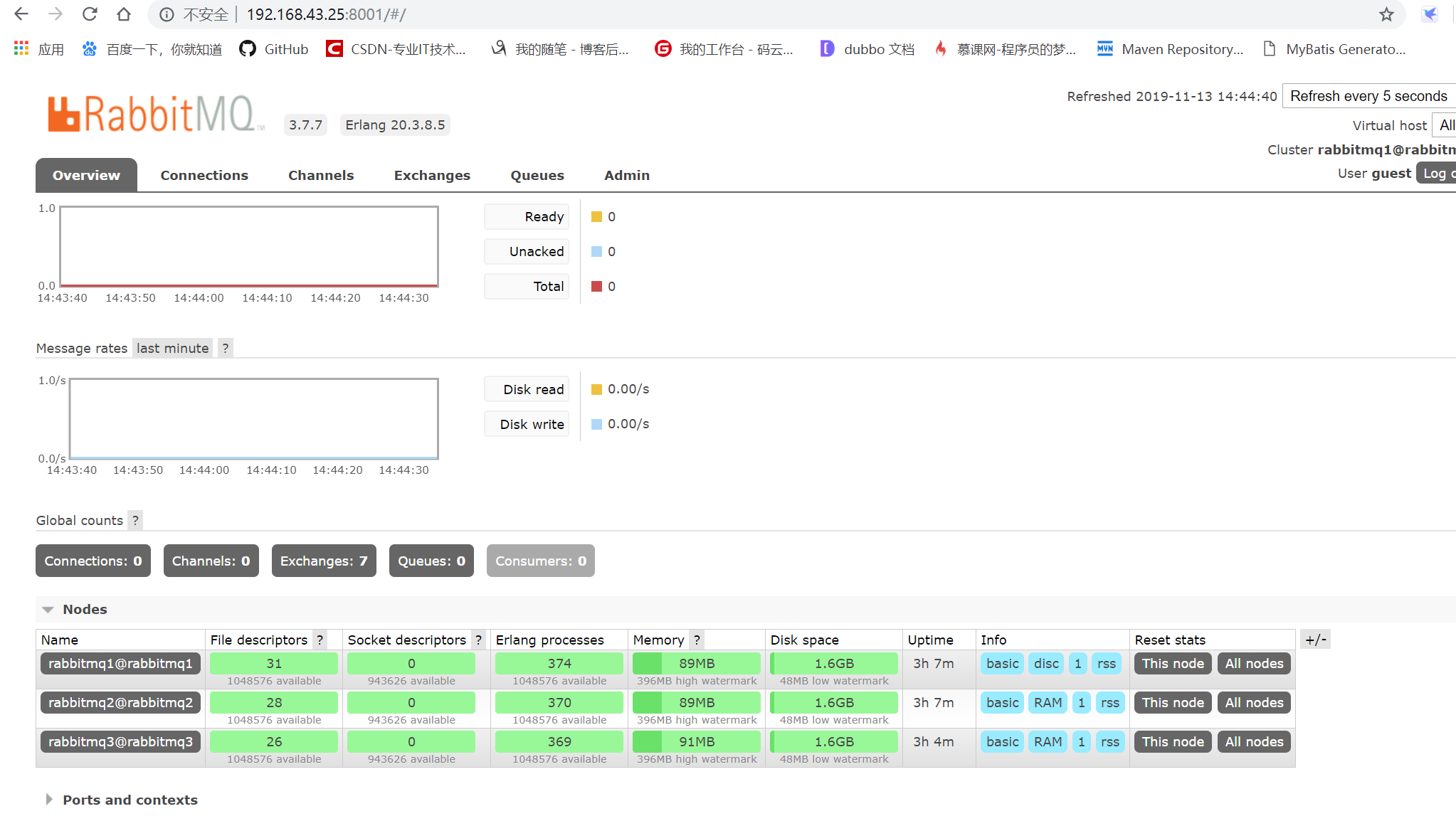 | 1 | docker run -d --name=rabbitmq3 -p 5674:5672 -p 15674:15672 -e RABBITMQ_NODENAME=rabbitmq3 -e RABBITMQ_ERLANG_COOKIE='YZSDHWMFSMKEMBDHSGGZ' -h rabbitmq3 --net=rabbtimanet rabbitmq:3.7.7-management |