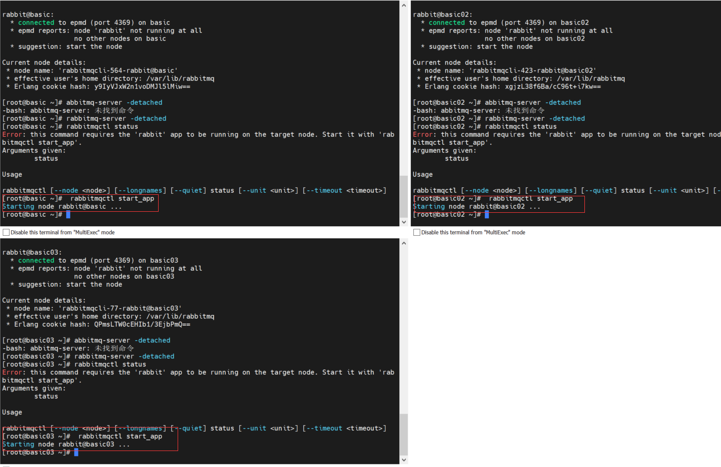 在三台主机上均执行以下命令,启动 RabbitMQ 服务