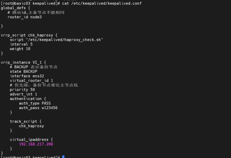 重启 basic 和观察状态 会自动将虚拟ip 切回 ,而basic03 将自动切换为备份节点状态