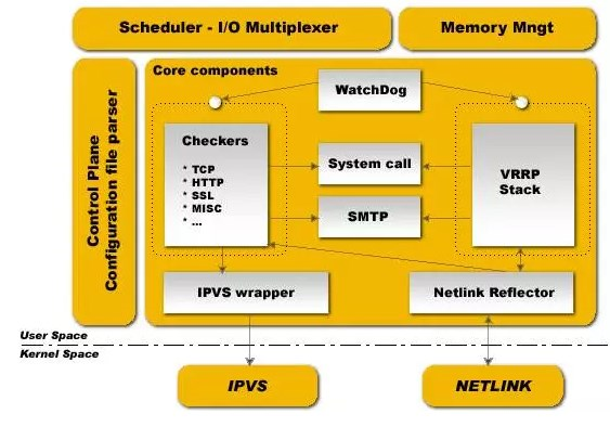 - Netlink Reflector:用来实现高可用集群Failover时虚拟IP(VIP)的设置和切换 ,Netlink Reflector的所有请求最后都发送到内核空间层的NETLINK 模块来完成。