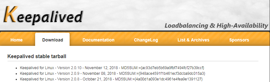 官方地址:http://www.keepalived.org/download.html 当前最新版本 2.0.10