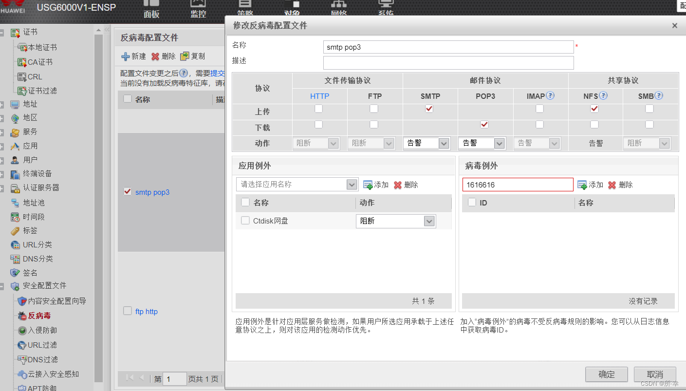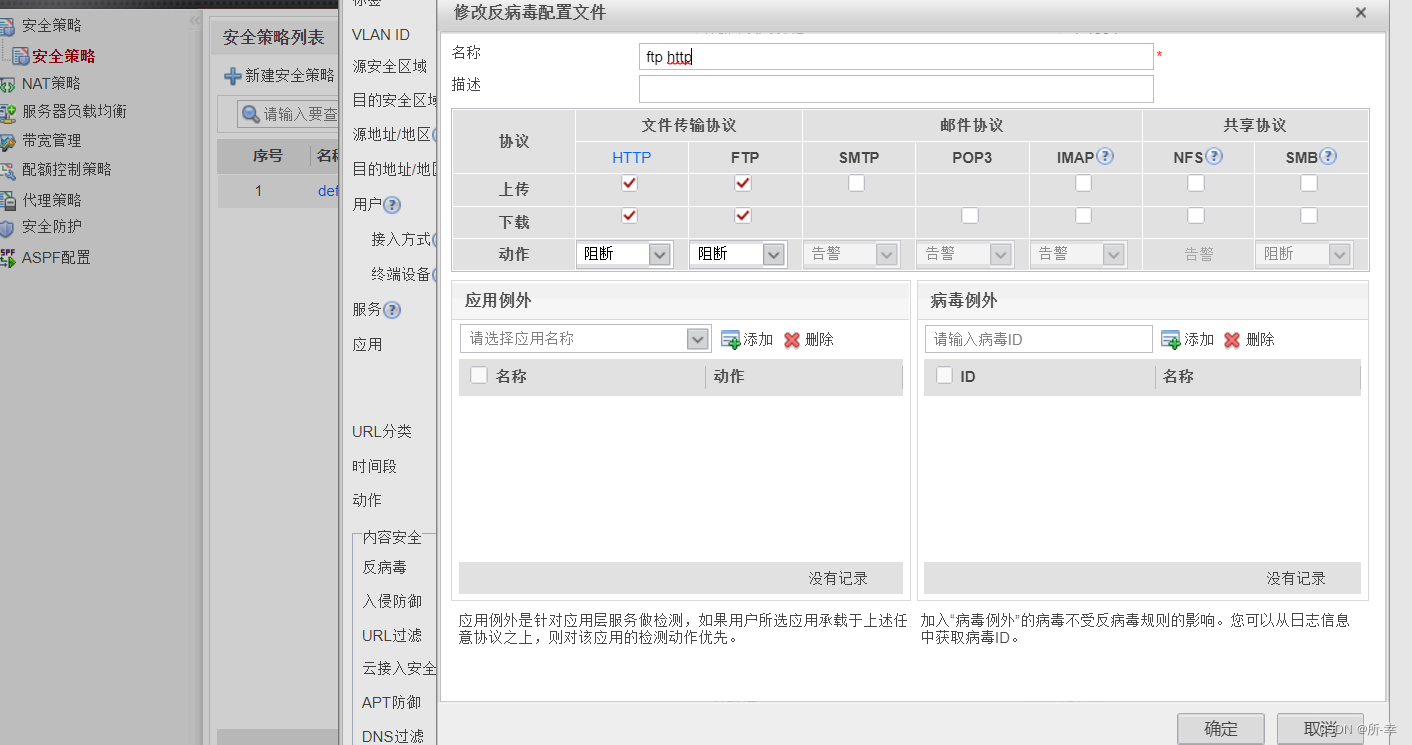 检查的对象是smtp和pop3,然后病毒列外将误杀的id放行就行。